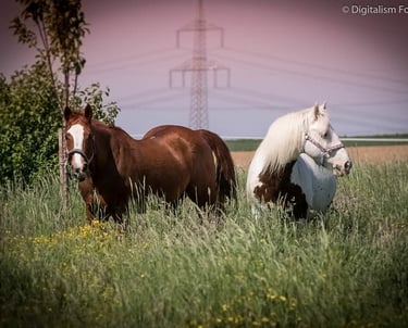 Die Pferde leben in nach Stuten und Wallachen getrennten Herden auf zwei jeweils ca. 800 m² befestigten Paddocks. Hier haben sie Tagsüber die Möglichkeit ihren sozialen Bedürfnissen nachzukommen, Fellpflege zu betreiben, zu spielen, toben, aufeinander aufzupassen und zu wachen. Jede Herde hat eigene zugeteilte Weiden wärend der Koppelsaison. Damit sich ausnahmslos jedes Pferd wohlfühlen kann.